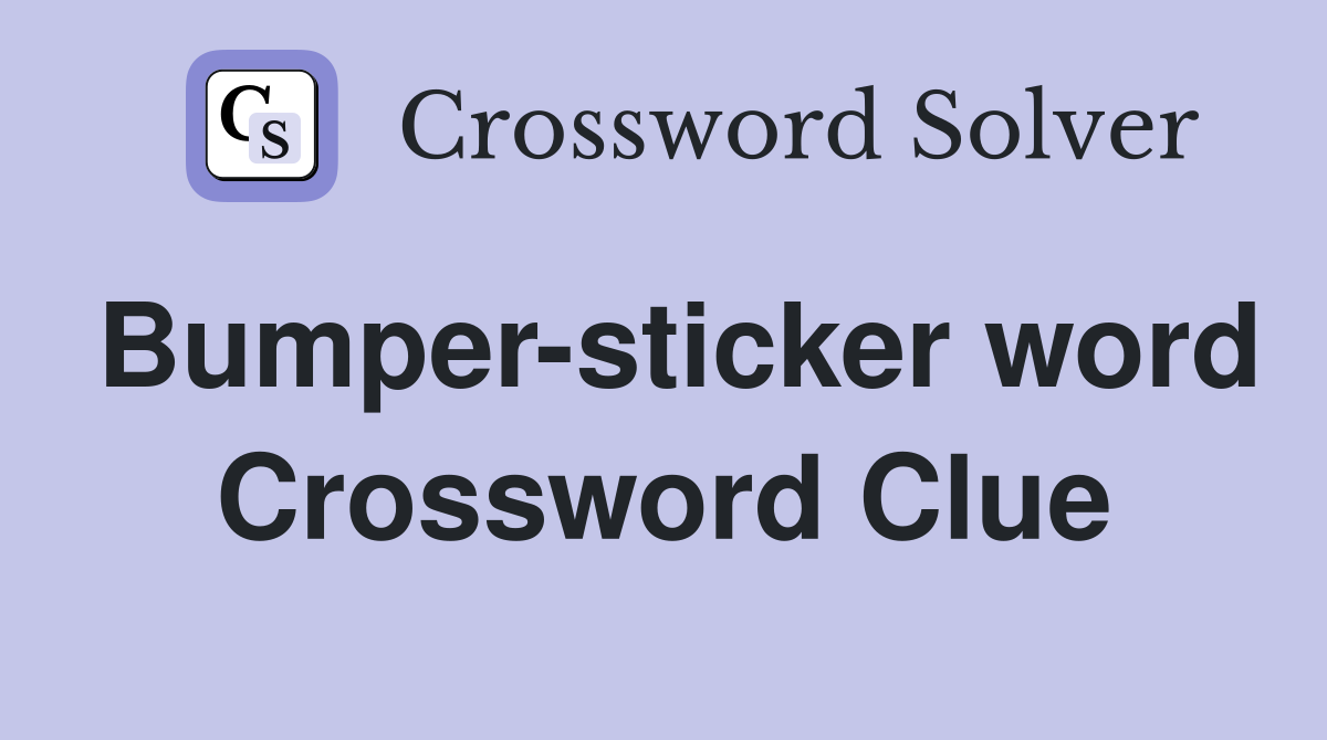 Bumper sticker word Crossword Clue Answers Crossword Solver