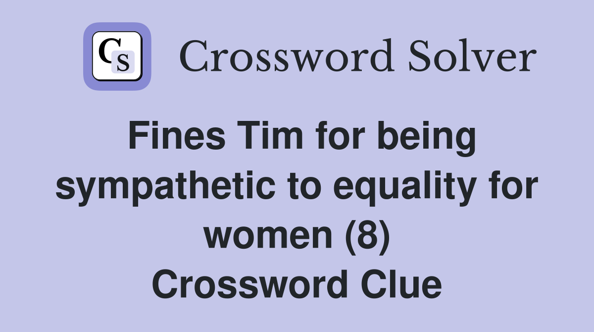 Fines Tim for being sympathetic to equality for women (8) Crossword