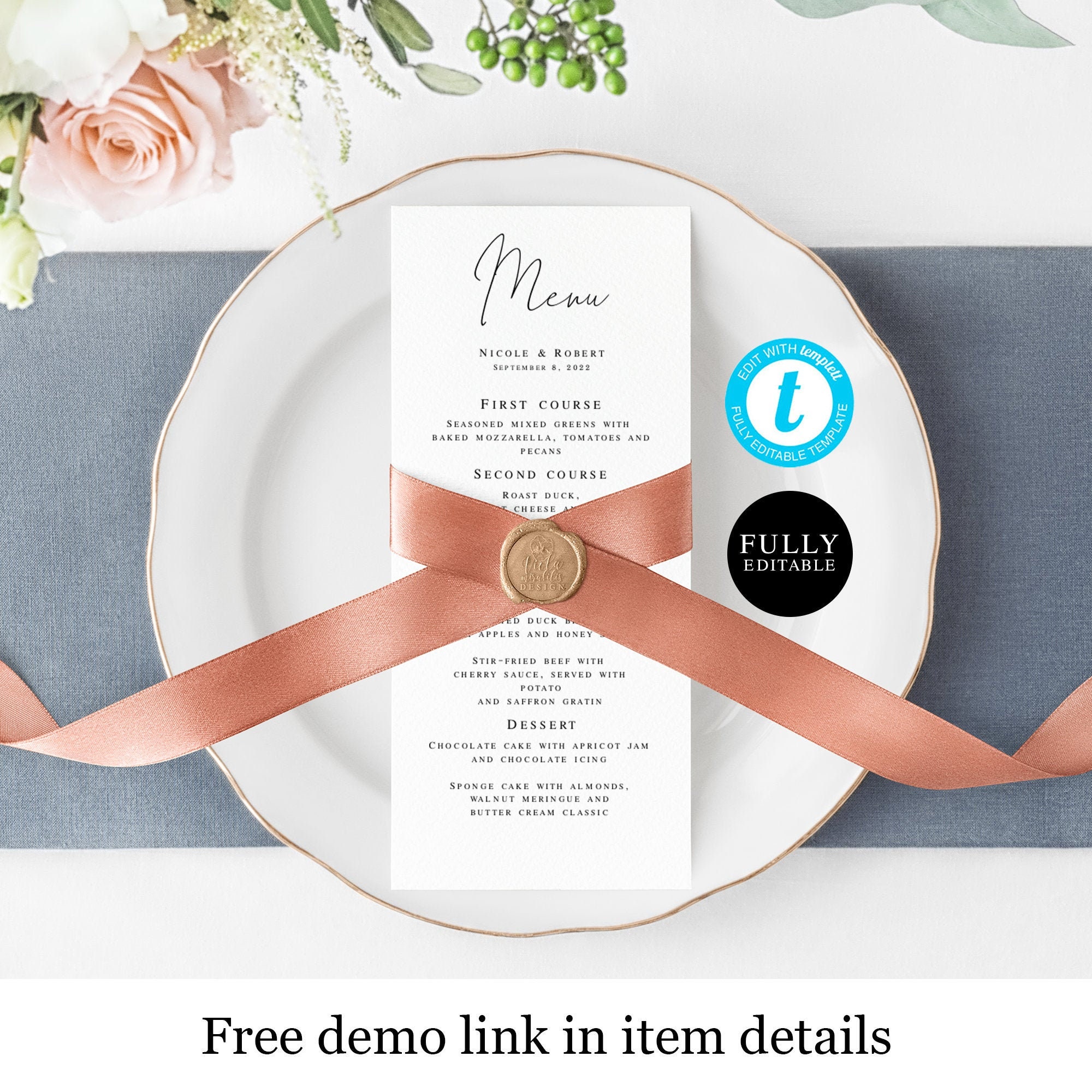 Template Menu Card Formal Wedding Dinner Fully Editable Etsy