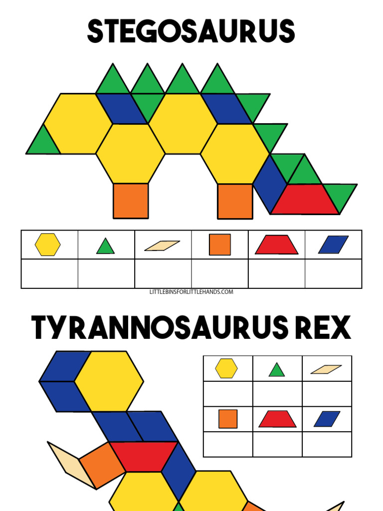 Dinosaur Pattern Blocks Mats and Task Cards Pattern Block Templates