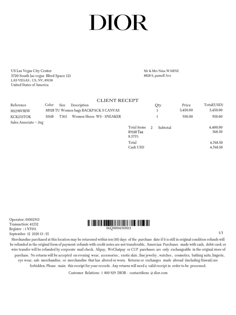 Dior Receipt PDF