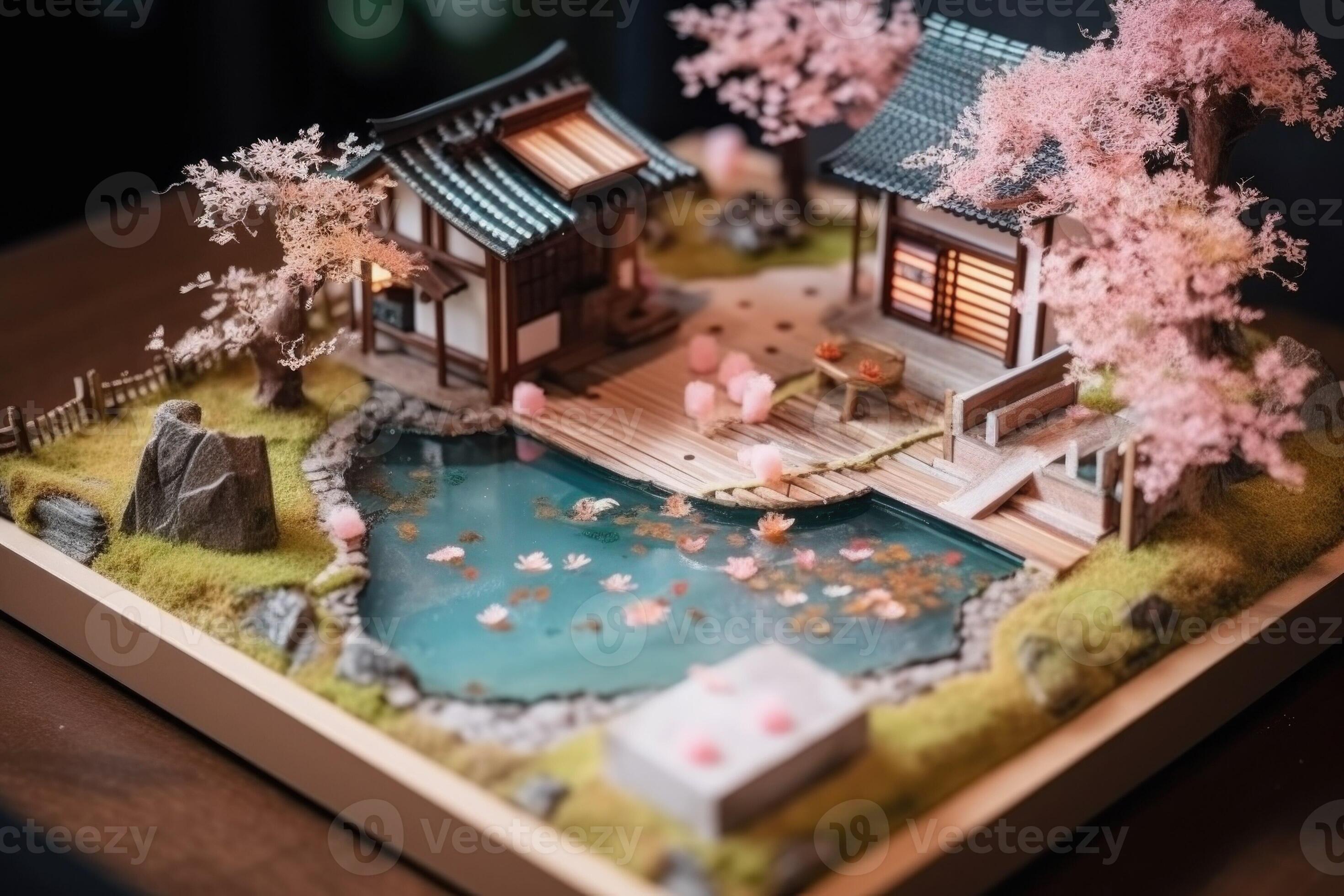 Diorama of Japanese garden Hot spring toy holiday home Miniature of
