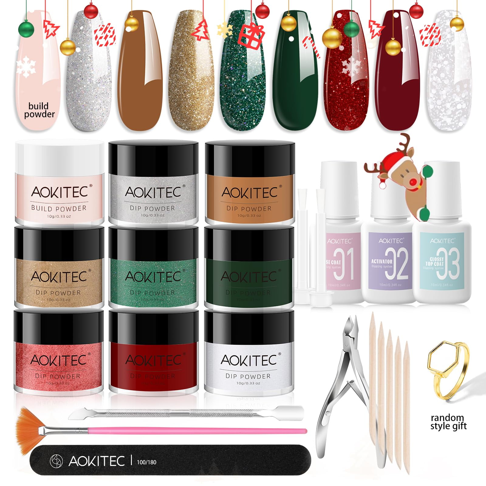 Aokitec Dip Powder Nail Kit Advent 2024 Christmas Colors Dip Powder