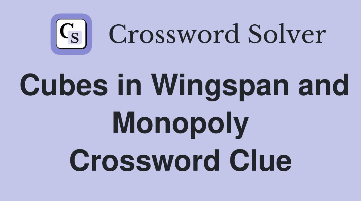 Cubes in Wingspan and Monopoly Crossword Clue Answers Crossword Solver