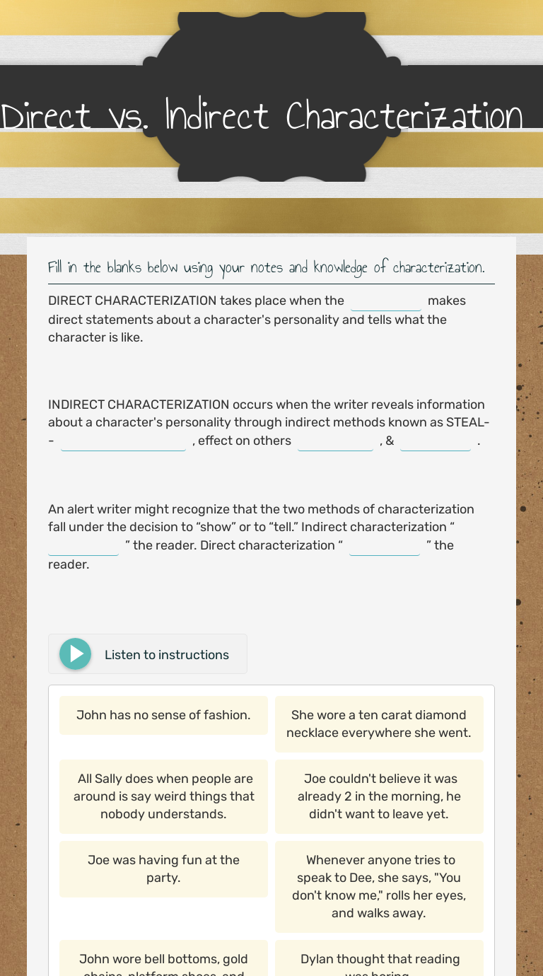 Here are some of the images for Direct And Indirect Characterization Worksheet that we found in our website database.
