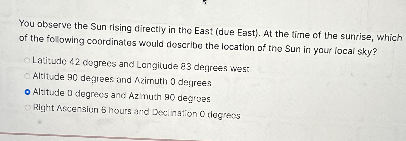 Solved You observe the Sun rising directly in the East (due Chegg com