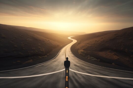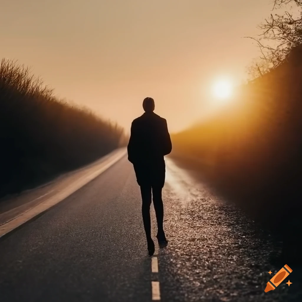 Man Walking Towards a Beautiful Sunrise Conceptual Image Representing
