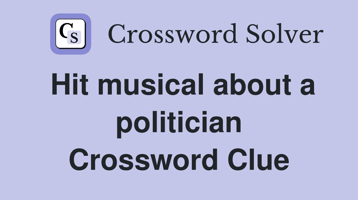 Hit musical about a politician Crossword Clue Answers Crossword Solver