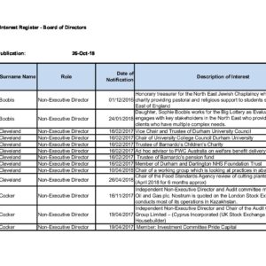 Register of Directors Interest 26 10 18 Cumbria Northumberland Tyne