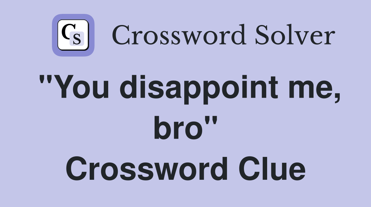 quot You disappoint me bro quot Crossword Clue Answers Crossword Solver