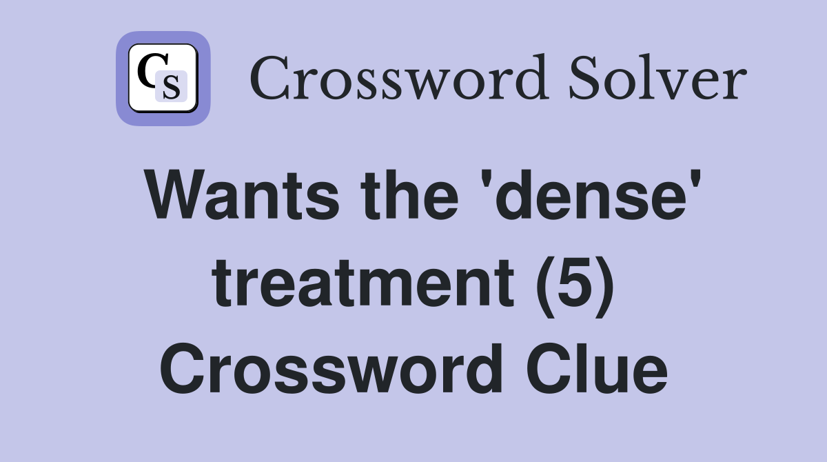 Wants the #39 dense #39 treatment (5) Crossword Clue Answers Crossword Solver