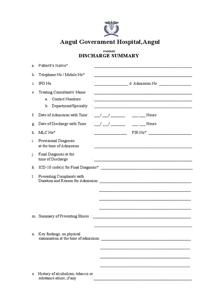 Sample Discharge Summary Template Health Physician Admission Discharge