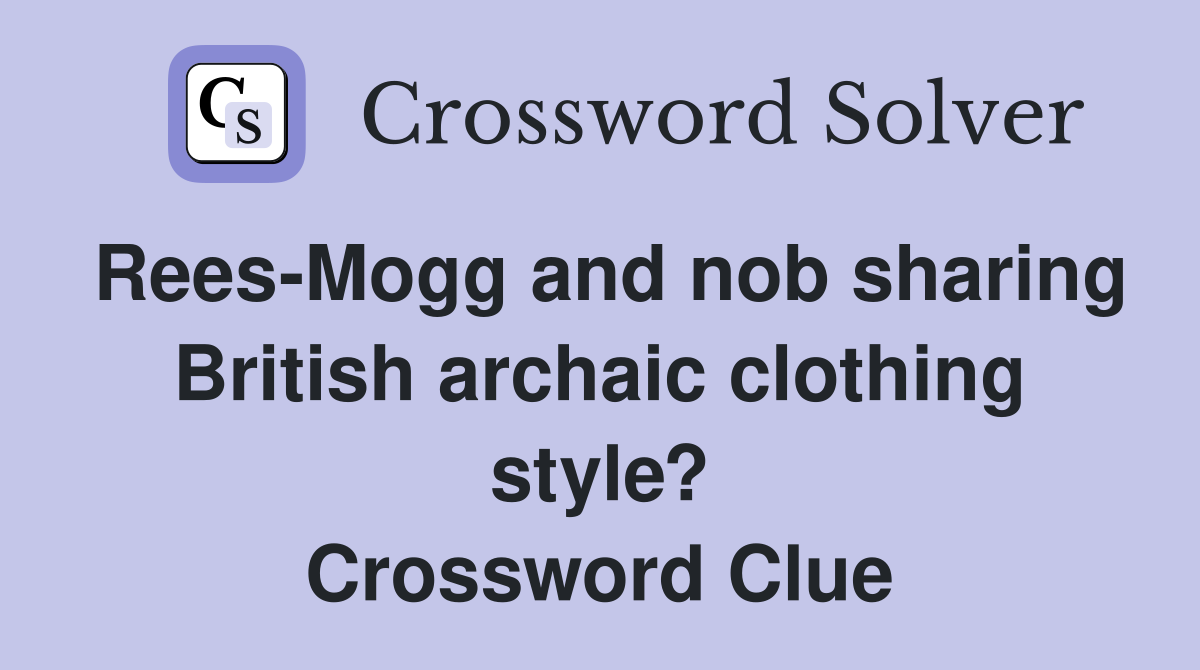 Rees Mogg and nob sharing British archaic clothing style? Crossword