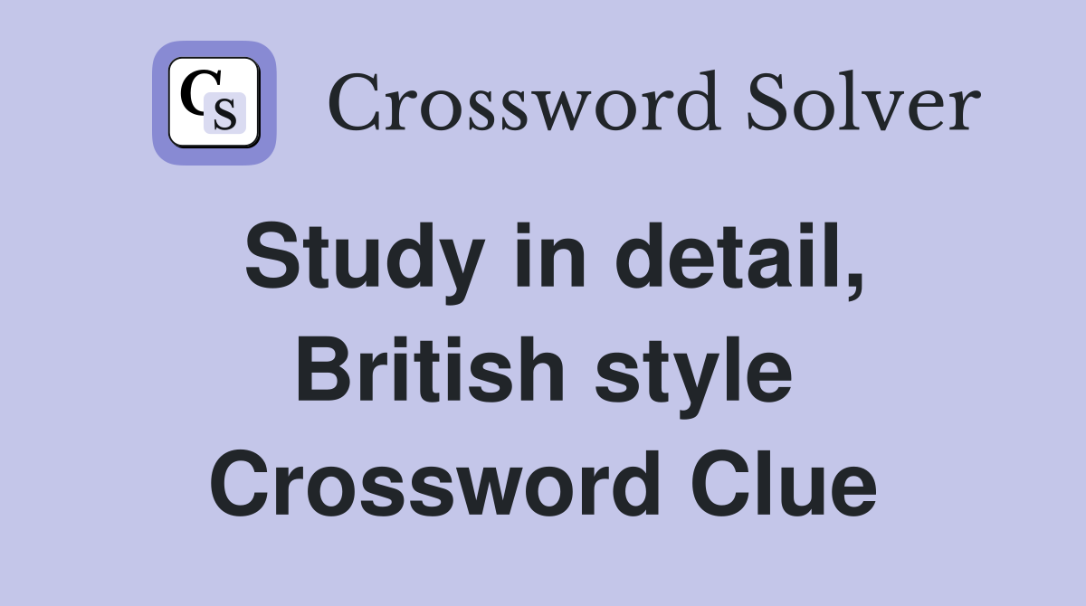 Study in detail British style Crossword Clue Answers Crossword Solver