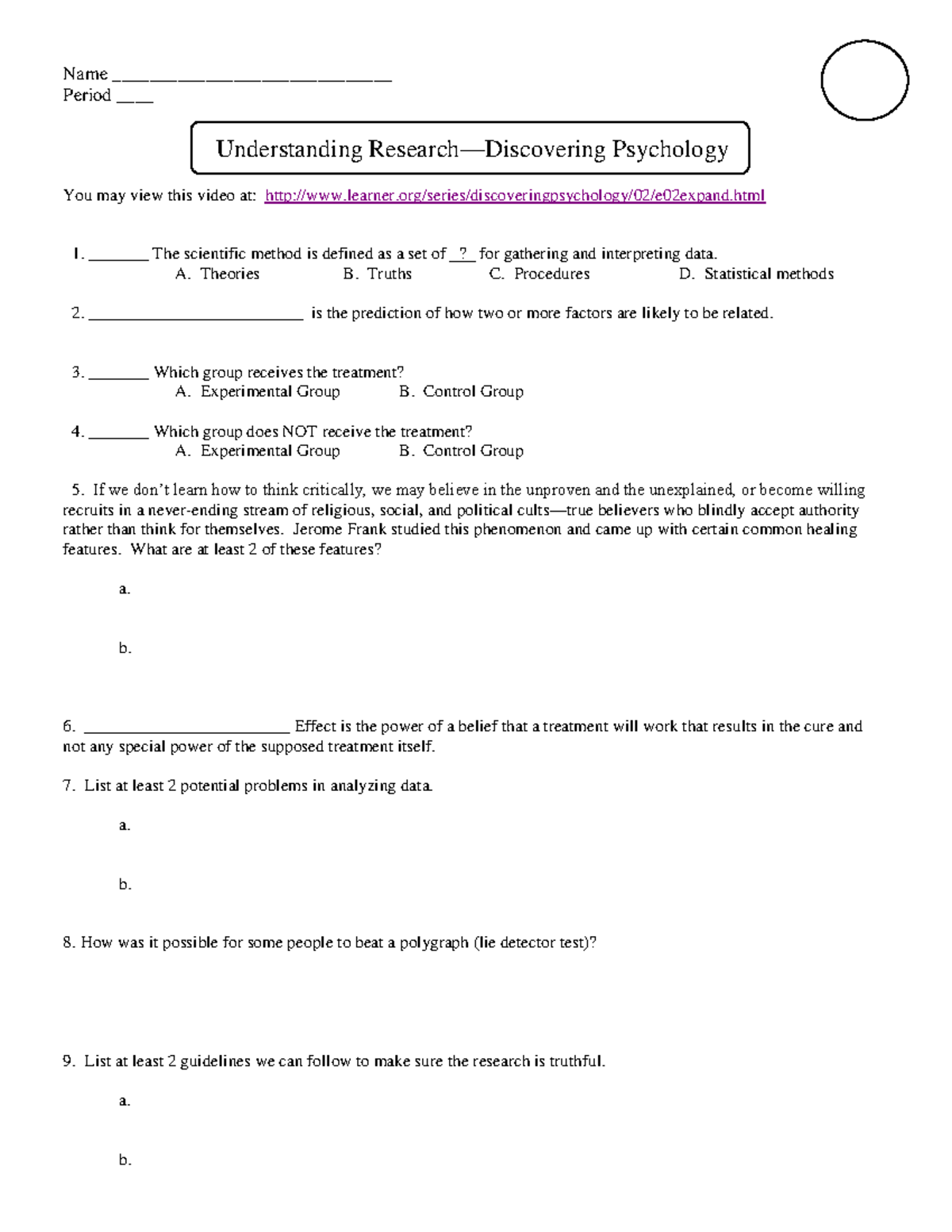 Here are some of the images for Discovering Psychology Understanding Research Episode 2 Worksheet Answers that we found in our website database.