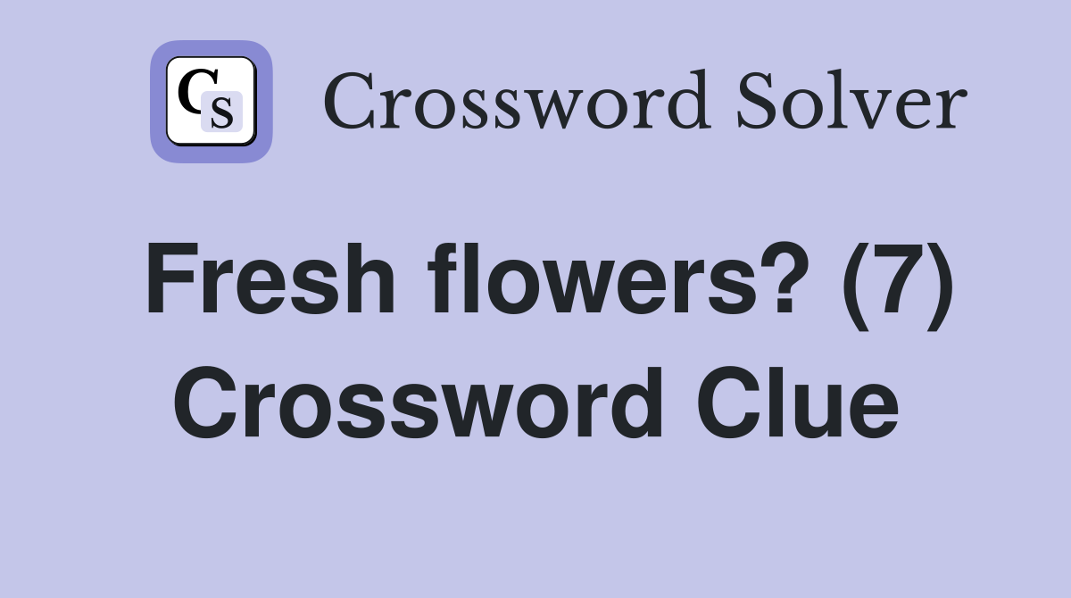 Fresh flowers? (7) Crossword Clue Answers Crossword Solver