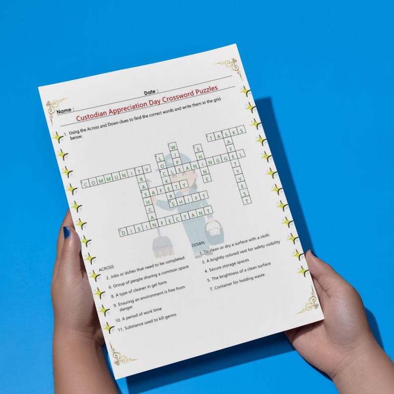 Custodian Appreciation Day Printable Bundle of 8 Crossword for School