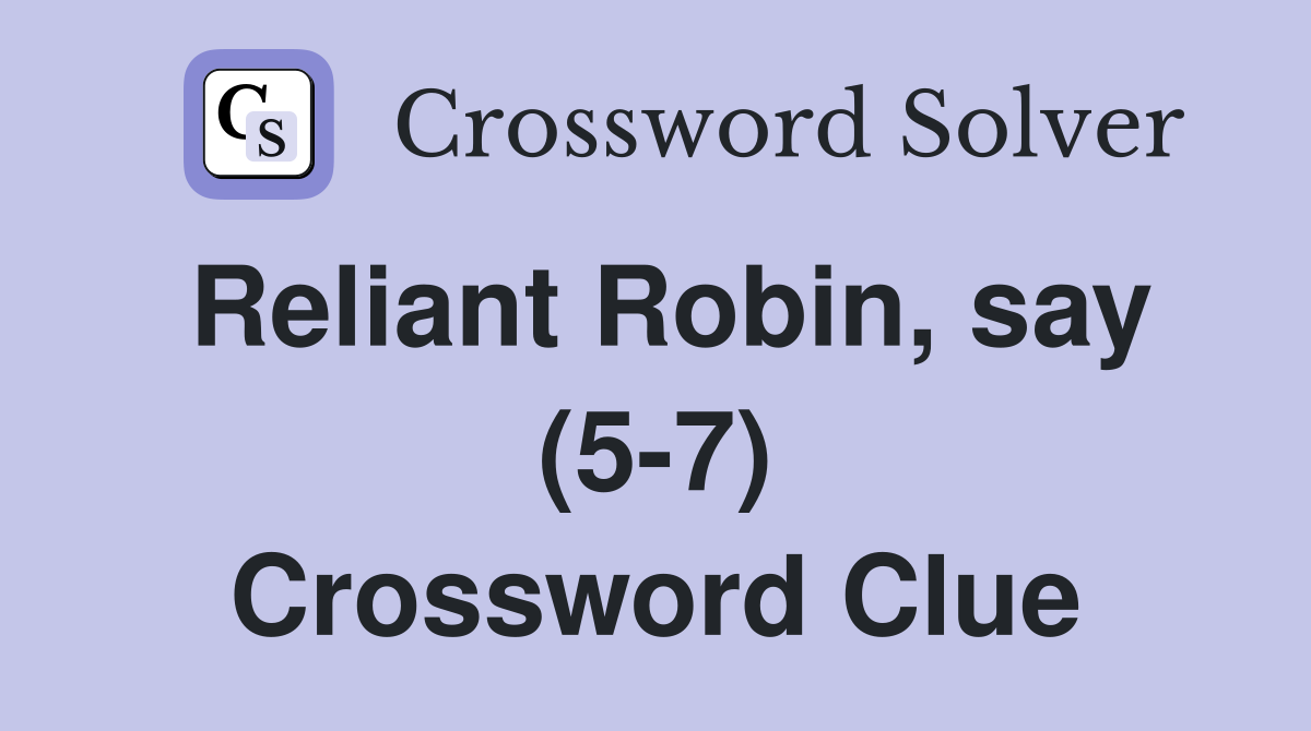 Reliant Robin say (5 7) Crossword Clue Answers Crossword Solver