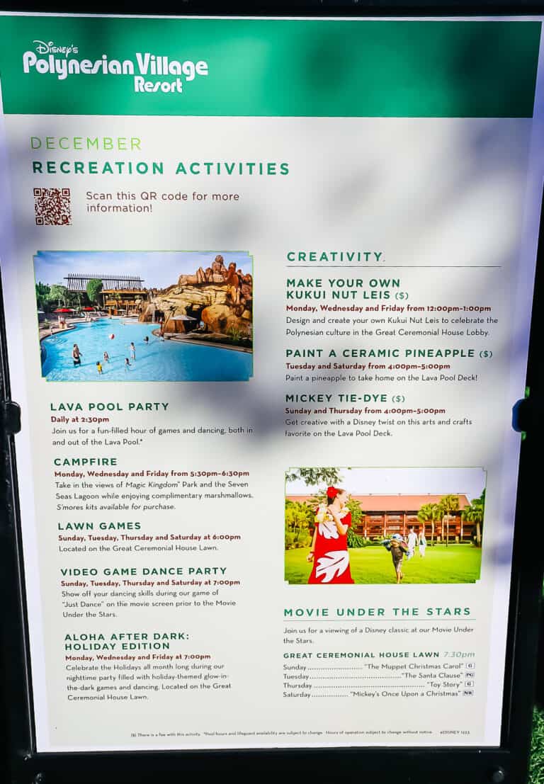 Disney Polynesian Activity Calendar