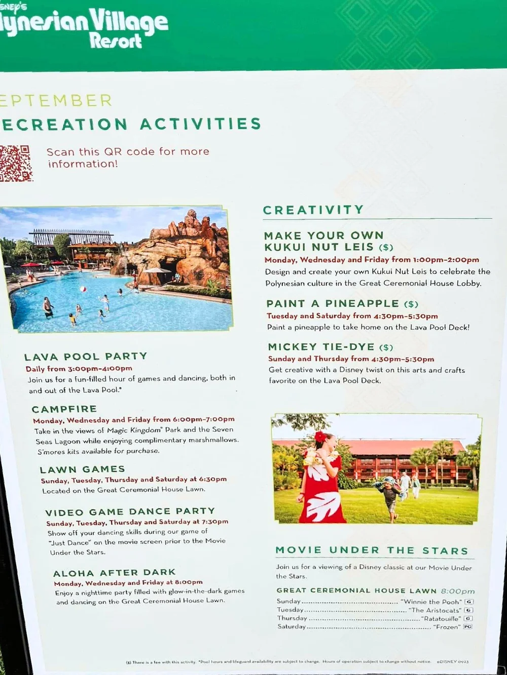 Disney #39 s Polynesian Village Resort Activity Calendar Recreation
