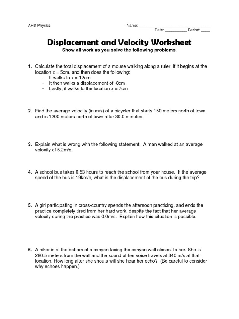 Displacement And Velocity Worksheet Printable Calendars AT A GLANCE