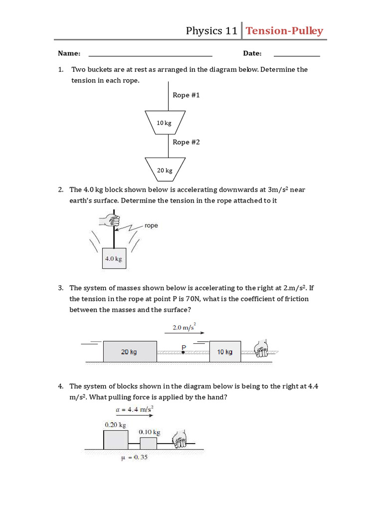 Displacement Velocity Worksheet PDF Tension (Physics) Force