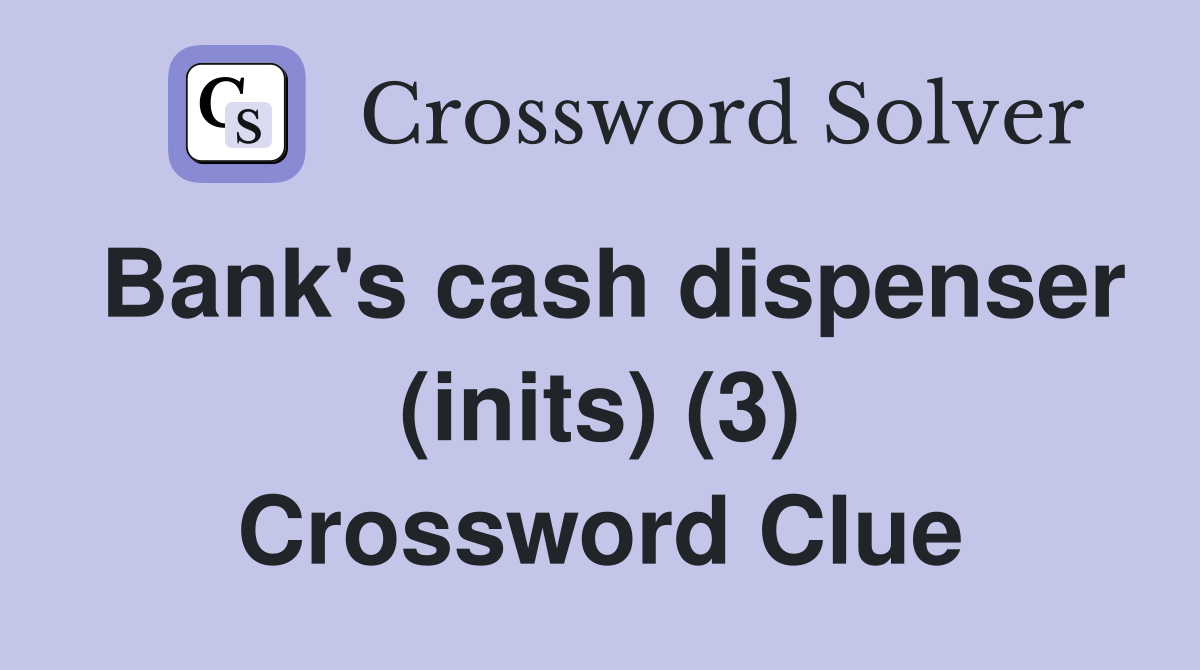 Bank s cash dispenser (inits) (3) Crossword Clue Answers Crossword