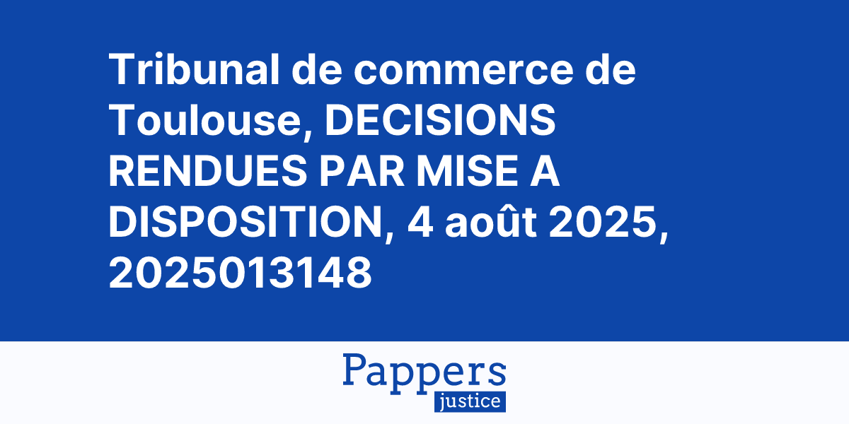 Tribunal de commerce de Toulouse DECISIONS RENDUES PAR MISE A