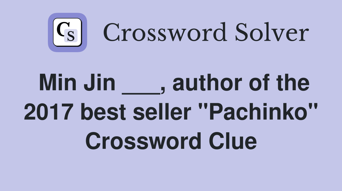 Min Jin author of the 2017 best seller quot Pachinko quot Crossword Clue