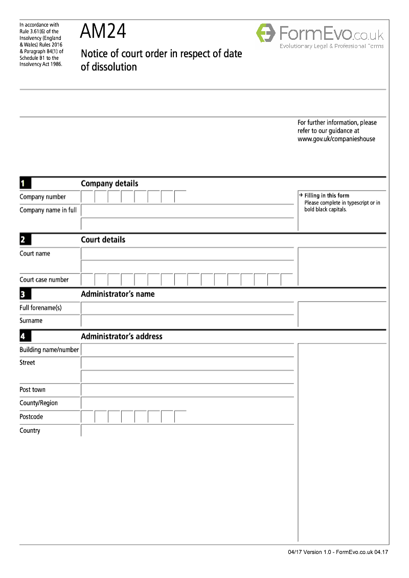 AM24 Notice of court order in respect of date of dissolution (Rule 3 61(1))