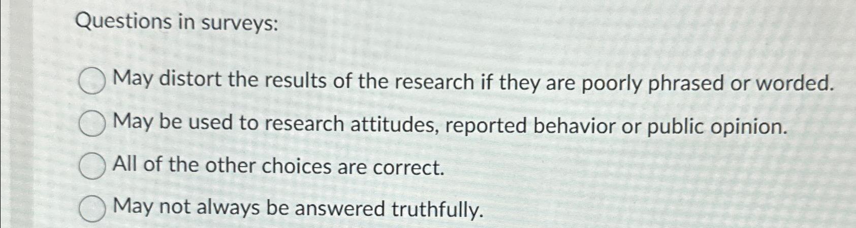 Solved Questions in surveys:May distort the results of the Chegg com