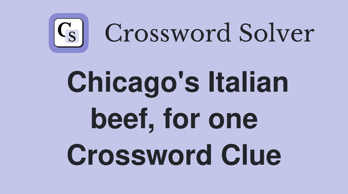 Chicago #39 s Italian beef for one Crossword Clue Answers Crossword Solver