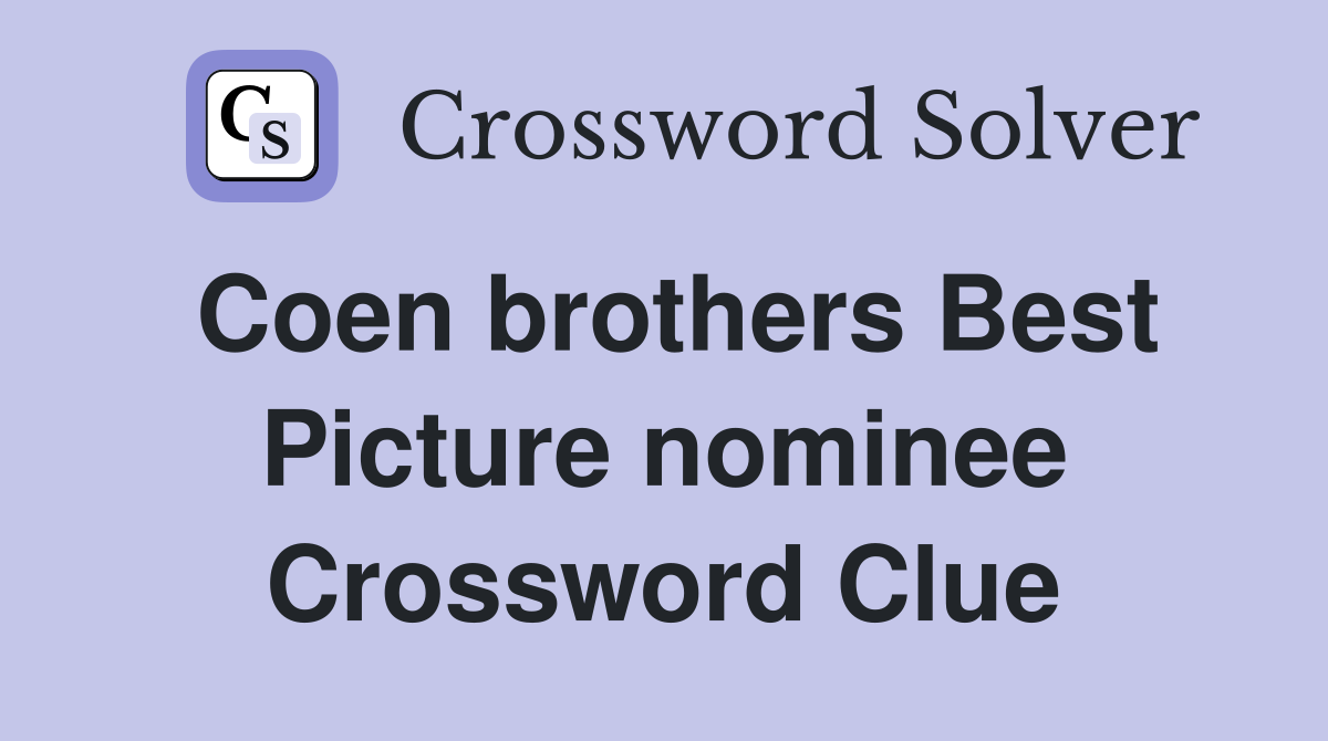 Coen brothers Best Picture nominee Crossword Clue Answers Crossword