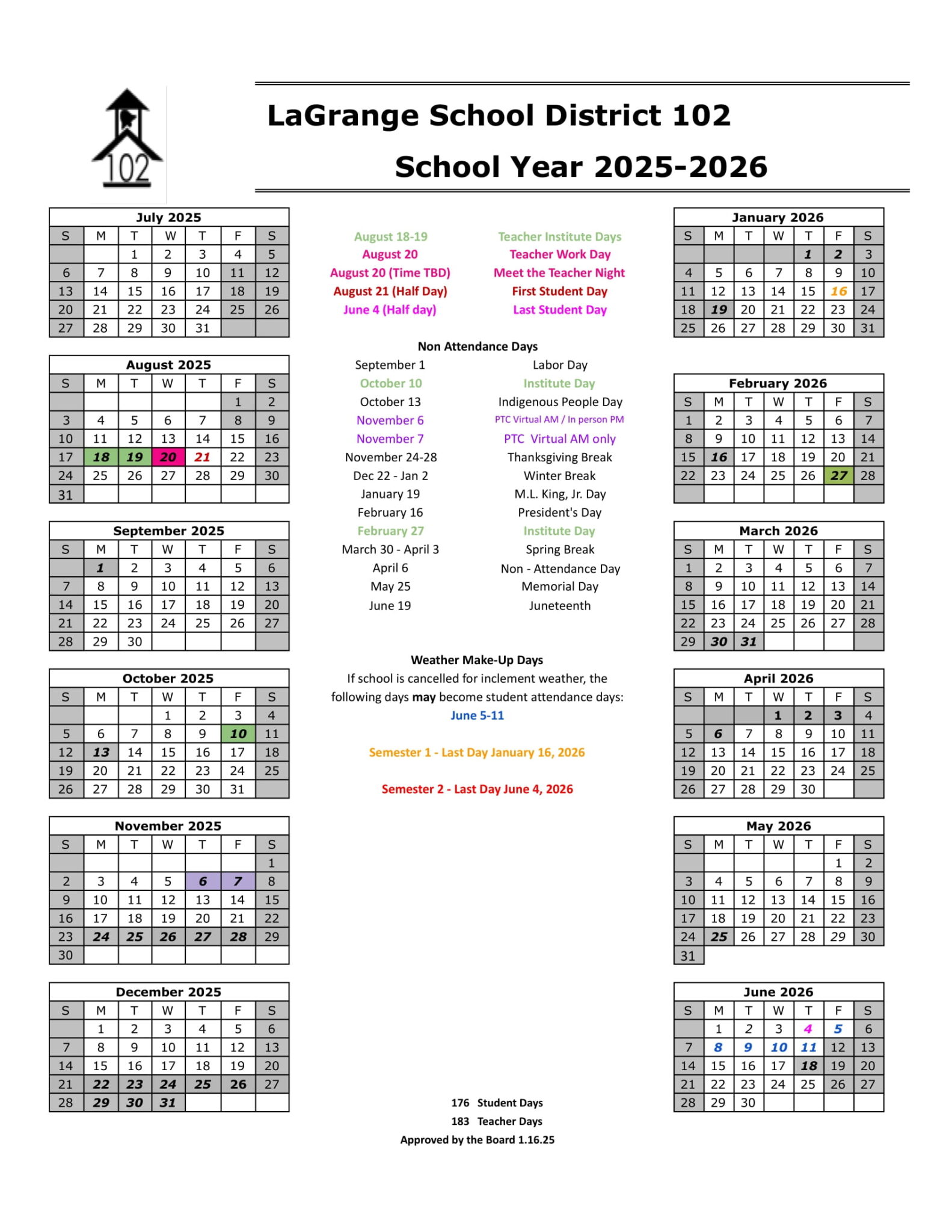 Lagrange school district 102 calendar revised 25 26 EduCounty