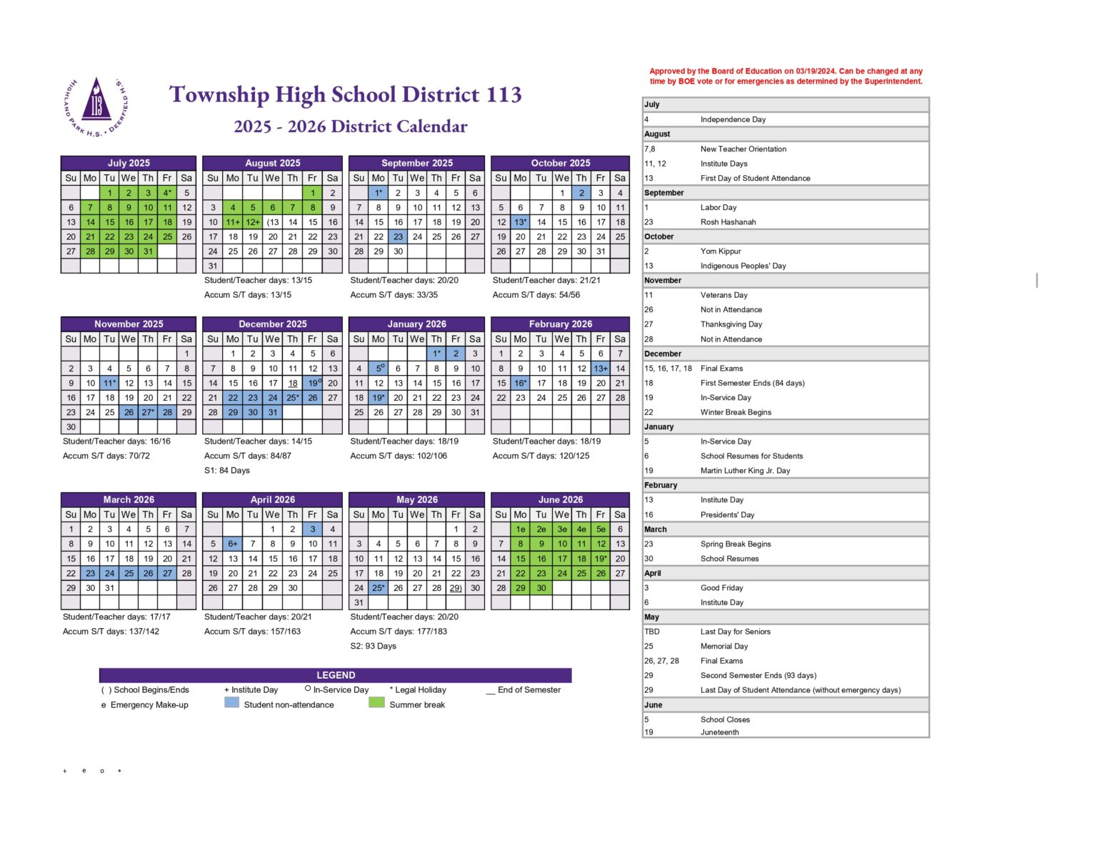 District 113 School Calendar 2025 Schoolcalendars net