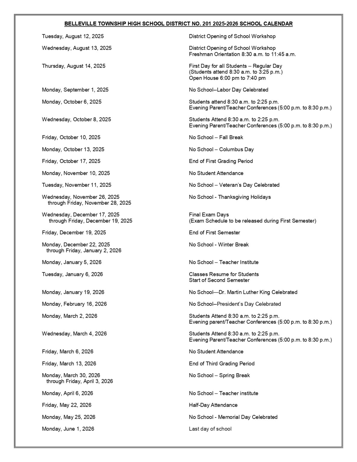 Belleville Township east/west BTHS Calendar 25 26 revised EduCounty
