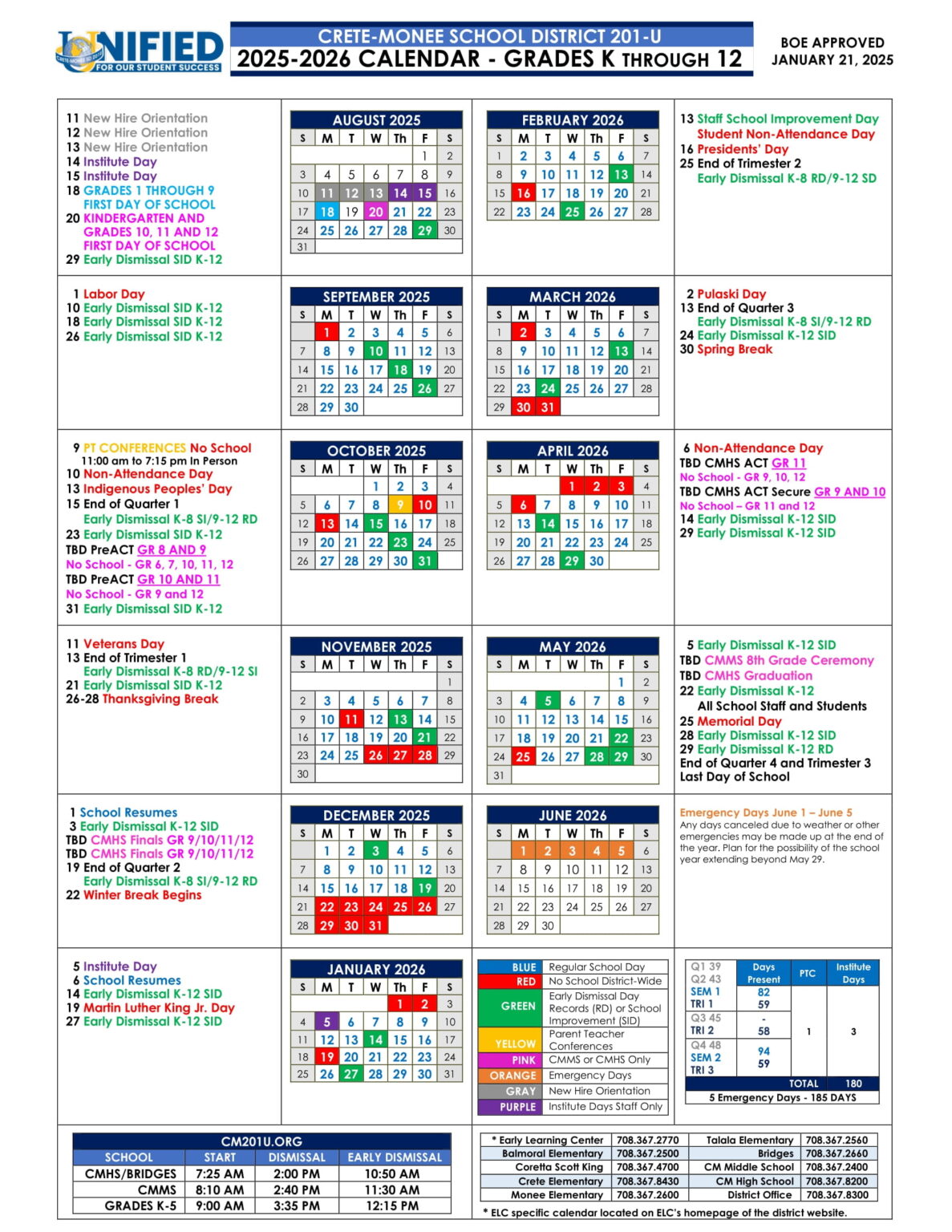 Crete Monee School District CM201 U Calendar 25 26 revised EduCounty