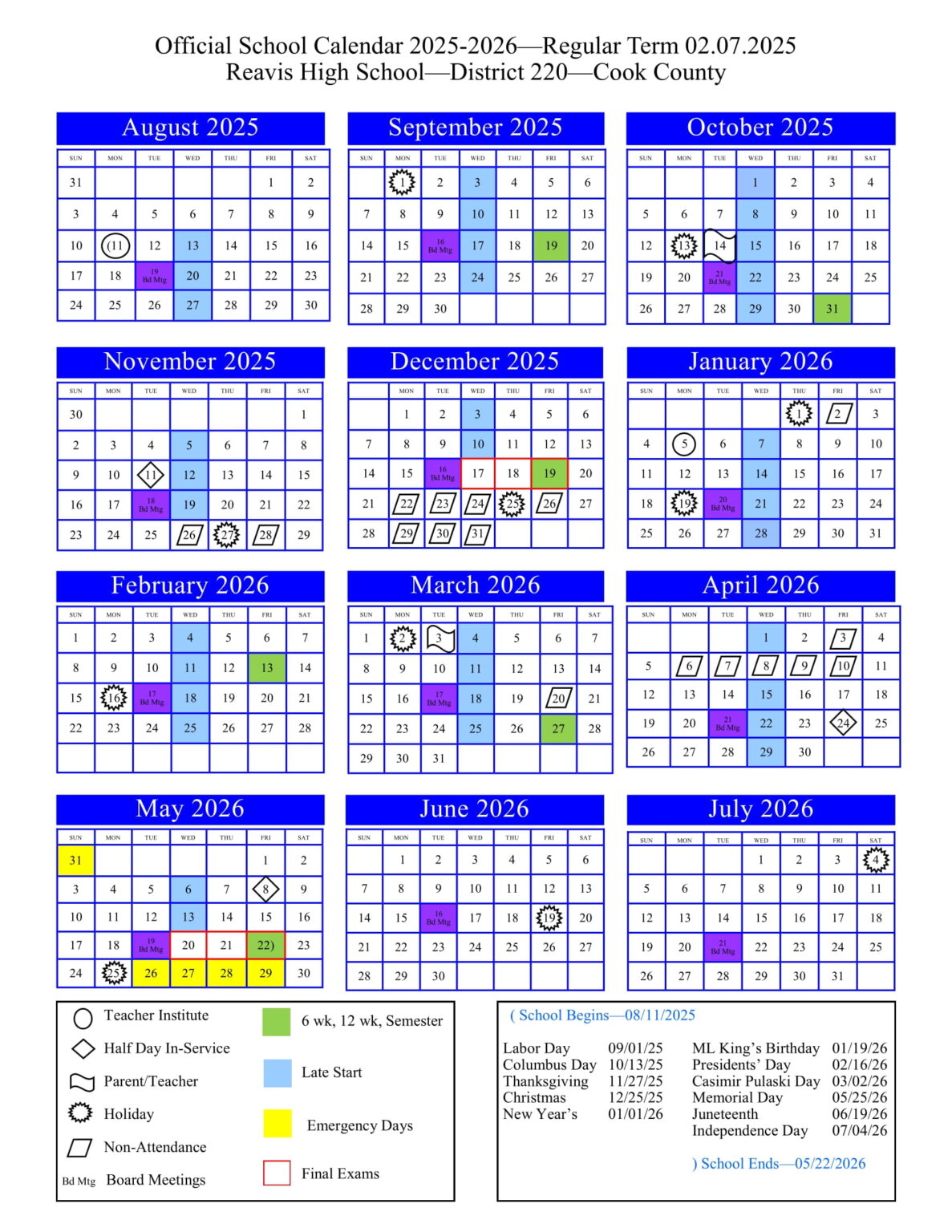 Reavis High School District 220 PDF 25 26 Calendar EduCounty