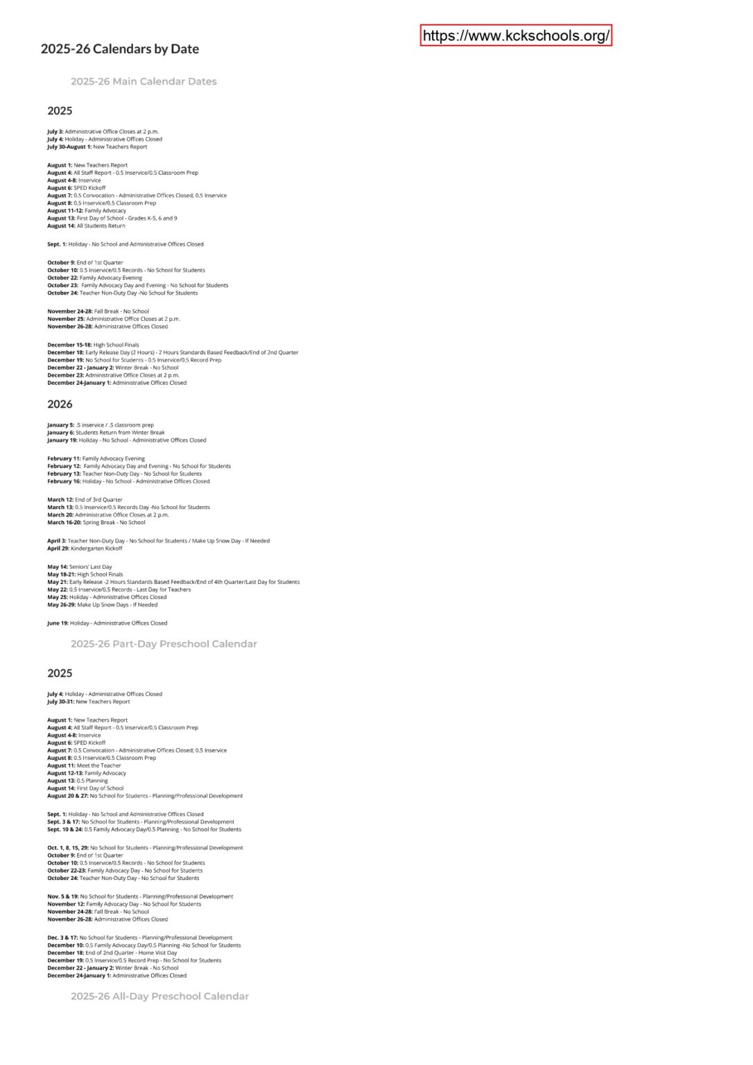 Kansas City Public Schools Calendar 2025 2026 Holidays