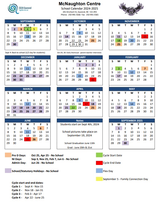 District Calendars School District 28 Quesnel