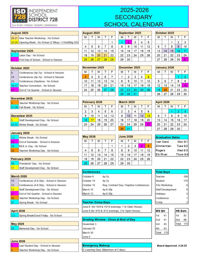 2025 26 District 728 school calendar just about ready Elk River Star