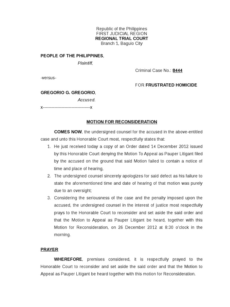 Motion for Reconsideration Legal Procedure Crimes