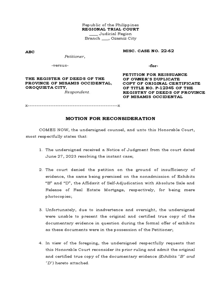 Motion For Reconsideration Format PDF Judgment (Law