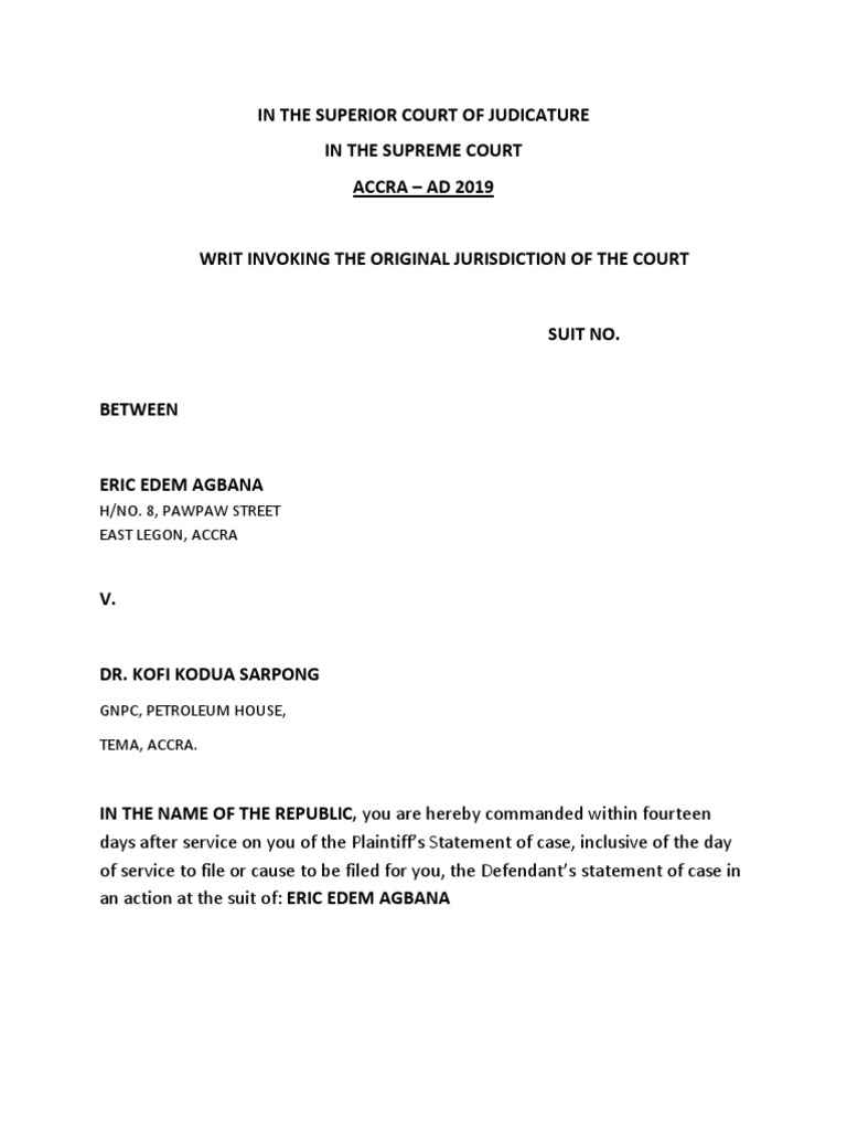 Writ of Summons For Supreme Court 1 PDF Writ Supreme Courts