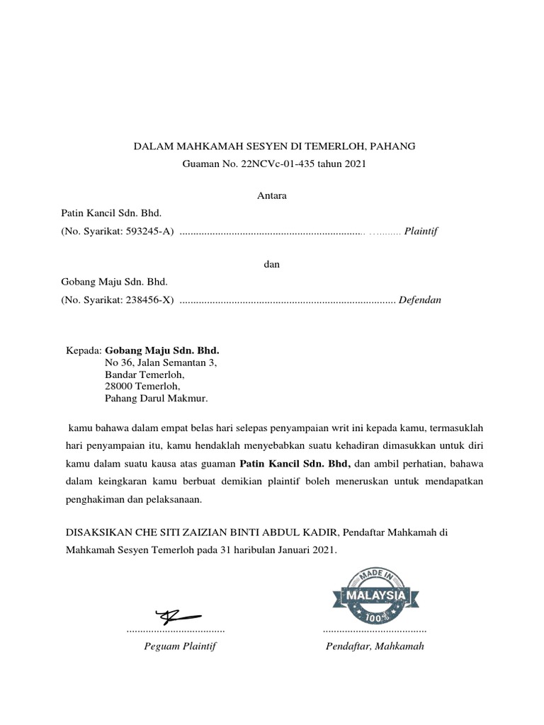 Writ of Summons Man PDF Writ Summons
