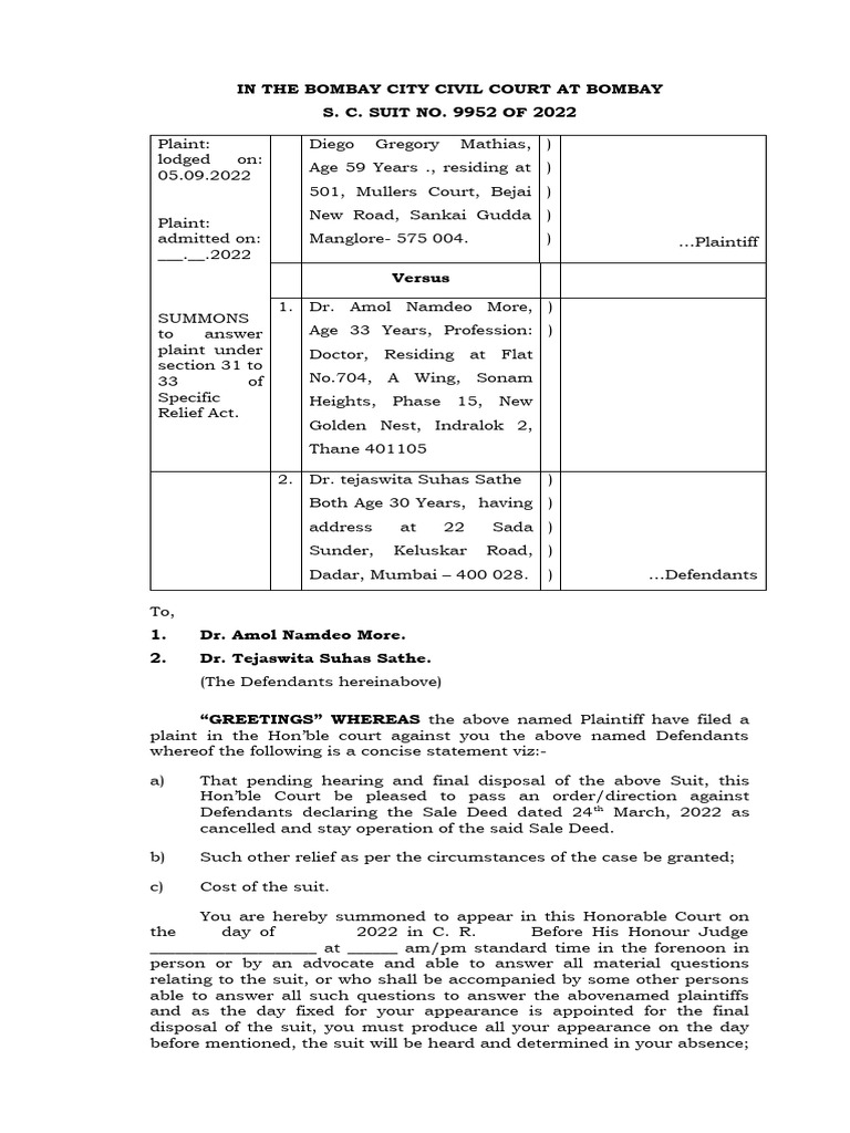 Writ of Summons Completed PDF