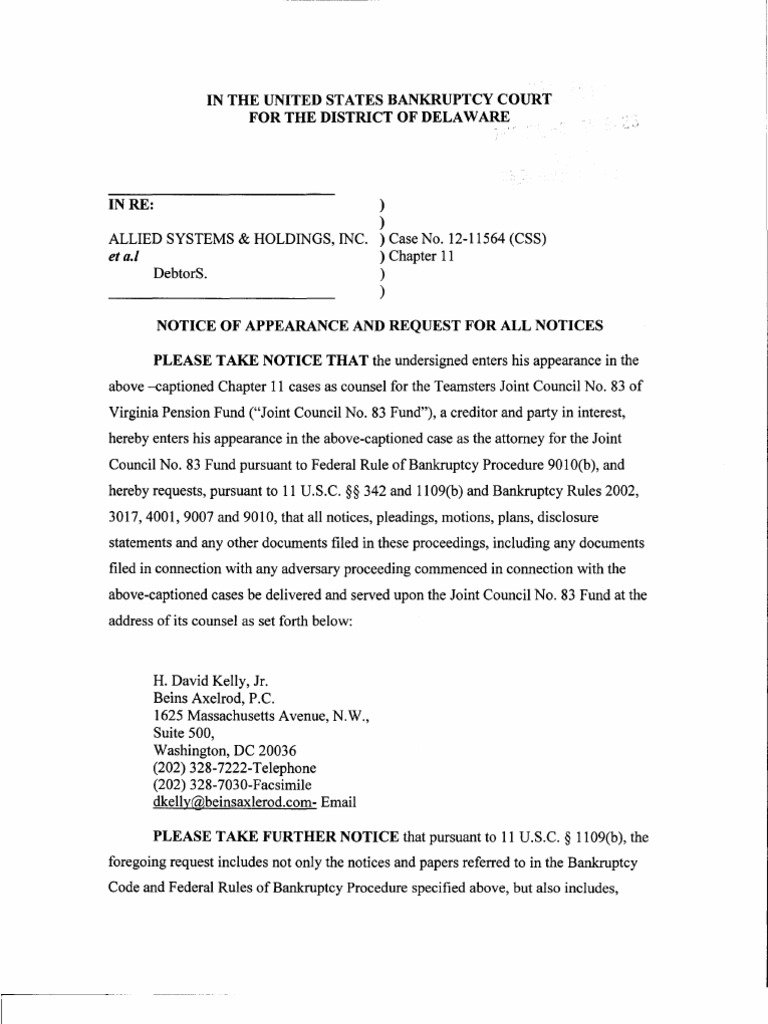 United States Bankruptcy Court: District of Delaware PDF Assignment