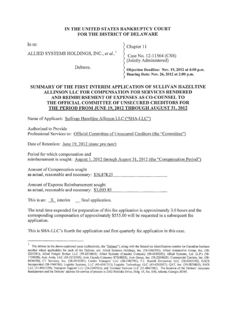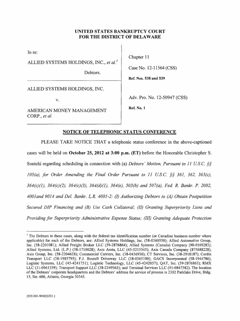 United States Bankruptcy Court For The District of Delaware: Ref 538