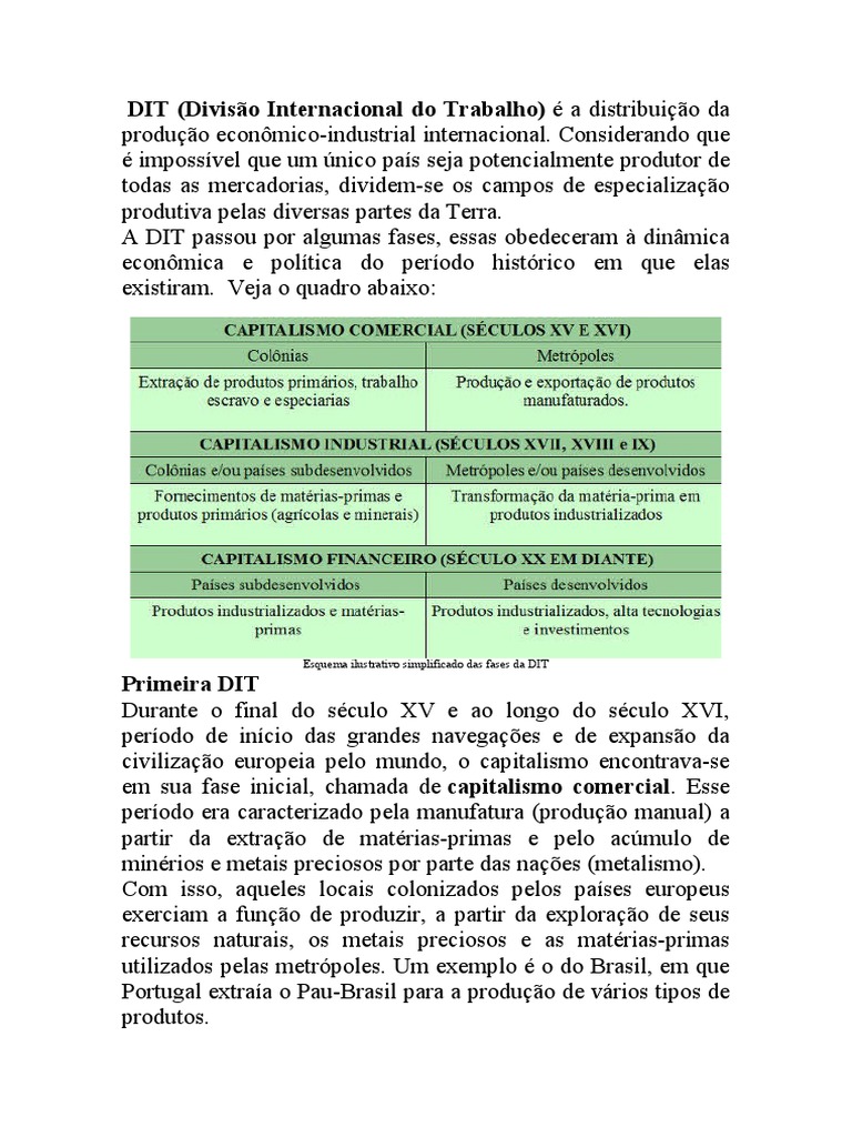 Dit classica e nova dit (Divisão Internacional do Trabalho)