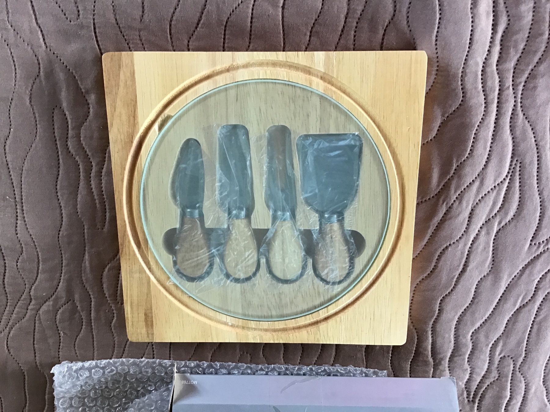 Käsebrett mit Glasplatte und div Käsemessern 24/24 cm (Neu und